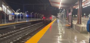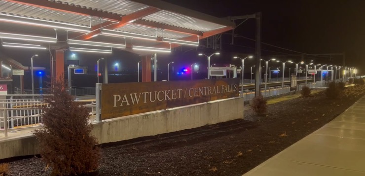 La estación de tren, ubicada en la Calle Pine, agrega una parada a la línea MBTA Providence/Stoughton, que conecta Blackstone Valley con Boston. El primer tren partió poco antes de las 4:30 a.m.