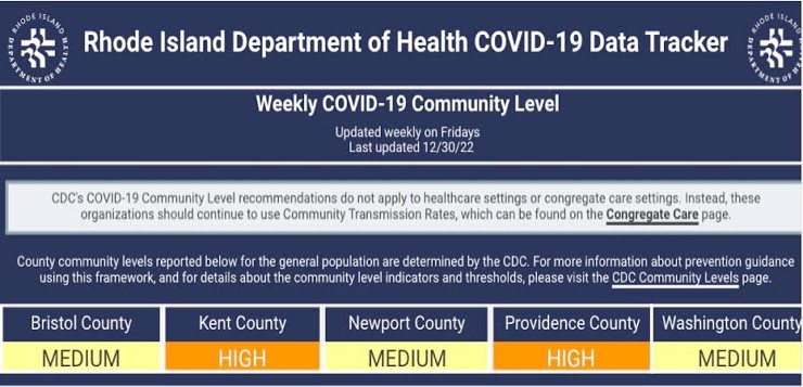 Providence – El Departamento de Salud de Rhode Island (RIDOH) informa que se ha elevado el nivel comunitario de COVID-19 para todos los condados de Rhode Island debido a un aumento en los casos y hospitalizaciones.