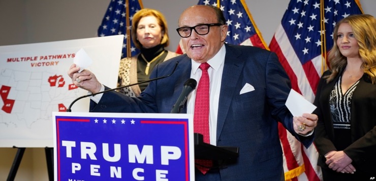 Como parte del esfuerzo de Trump en Georgia, Giuliani, en las semanas posteriores a las elecciones de noviembre de 2020, pasó horas ante paneles legislativos estatales propugnando falsas teorías de conspiración sobre maletas secretas de boletas demócratas y máquinas de votación corruptas. A nivel nacional, los jueces habían desestimado al menos 60 demandas de Trump alegando fraude electoral.