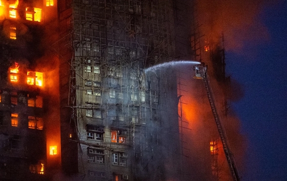 El feroz incendio produjo una columna de llamas y denso humo mientras se propagaba rápidamente por el andamiaje de bambú y la red de construcción instalada alrededor de la parte exterior del complejo habitacional, situado en el distrito de Tai Po, en los Nuevos Territorios. Los registros muestran que el complejo habitacional constaba de ocho bloques con casi 2.000 apartamentos que albergaban a unas 4.800 personas.