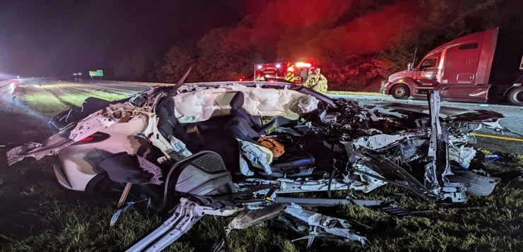 El accidente ocurrió alrededor de las 3 a.m. en el lado sur de la carretera por la salida 7. Un automóvil chocó con un camión con remolque y quedó destrozado en la escena.