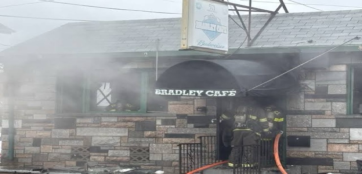 Los bomberos acudieron al Bradley Cafe en la calle Admiral alrededor de las 9 a. m. y encontraron una densa columna de humo saliendo del edificio.