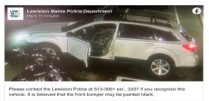 La policía está buscando activamente el vehículo de la foto, y se cree que el parachoques delantero podría estar pintado de negro. Piden al público comunicarse con la policía de Lewiston al 513-3001 ext. 3327 si reconoce el auto.