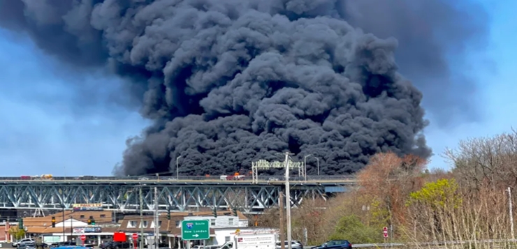 Groton, Ct. – Un choque que involucró a un camión de combustible y un automóvil provocó un incendio en un importante puente de carretera de Connecticut el viernes a eso de las 11 am, las llamas se extendieron a los edificios debajo y los funcionarios cerraron la Interestatal 95 en ambas direcciones durante el incendio.