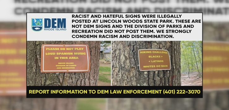 Lincoln – El Departamento de Gestión Ambiental (DEM, por sus siglas en inglés) de Rhode Island está investigando después de que se detectaron letreros “racistas y llenos de odio” en el Parque Estatal Lincoln Woods.