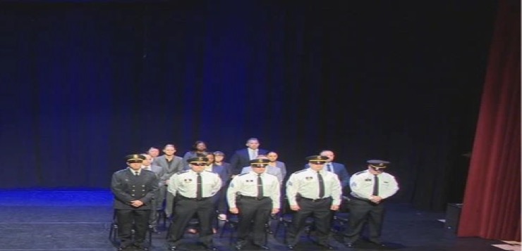 Catorce oficiales fueron ascendidos durante la ceremonia. Entre ellos se encontraban nuevos sargentos, detectives y un sargento detective que fue ascendido a teniente.