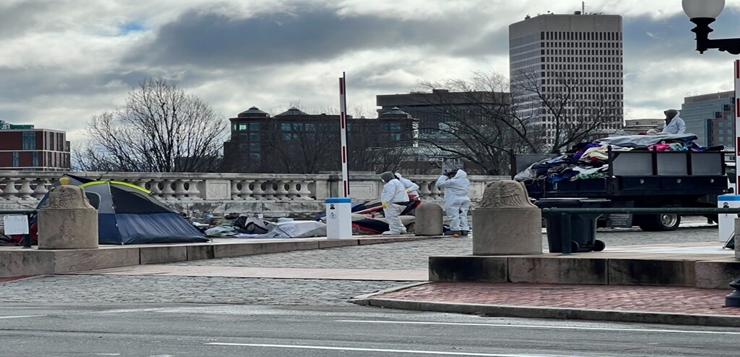 La remoción se produce después de que un juez de la Corte Superior dictaminó el viernes que el Gobernador Dan McKee puede desalojar a los campistas sin hogar.