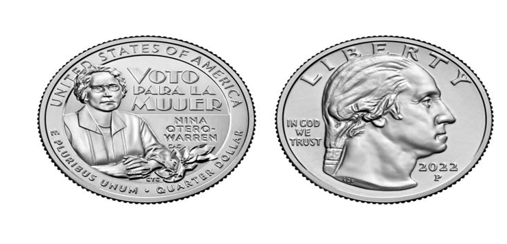 Estados Unidos pondrá en circulación el 15 de agosto una moneda de un cuarto de dólar acuñada en honor de María Adelina Isabel Emilia Otero-Warren (1881-1965), una luchadora por el derecho de las mujeres al voto.