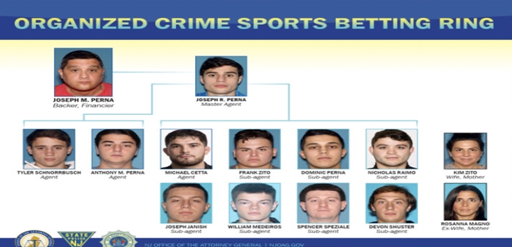 La organización incluía una red nacional de corredores de apuestas que supuestamente operaban bajo la dirección de Joseph M. “Little Joe” Perna, miembro de la familia criminal Lucchese. Perna actuaba como el financista, quien financiaba la operación. El hijo de Perna, Joseph R. Perna, de 25 años y residente de Oakland, Nueva Jersey, dirigía las operaciones diarias de la casa de apuestas, facilitando el trabajo de decenas de agentes subordinados, entre ellos su hermano, Anthony Perna, de 23 años y también residente de Oakland; su hermanastro, Frank Zito, de 23 años y residente de Fairfield; y sus primos, Dominic Perna, de 23 años y residente de Newark, Nueva Jersey; y Michael Cetta, de 23 años y residente de North Haledon, Nueva Jersey.