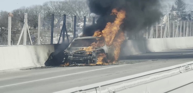 Providence – Caos vehicular en la I-195 en ambos lados luego de que un vehículo se incendiara en el puente Washington, la tarde del lunes.