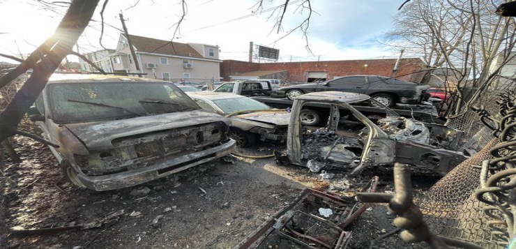 Dwyer dijo que se estaba incendiando una “gran cantidad” de maleza cerca del lote. No está claro en este momento si el fuego comenzó en un vehículo o en la maleza. No se reportaron heridos, aunque Dwyer dijo que el propietario del negocio fue tratado por “dolores en el pecho” después de intentar apagar el fuego él mismo con varios extintores.