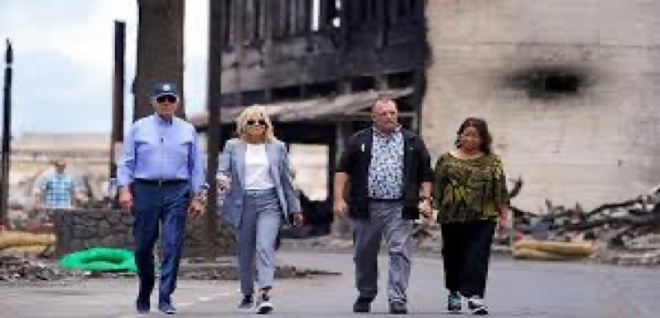 Los Biden se dirigieron a la ciudad de Lahaina en Maui en medio de sus vacaciones de una semana en el área del lago Tahoe y se reunieron con los residentes, los socorristas y los funcionarios estatales y locales.