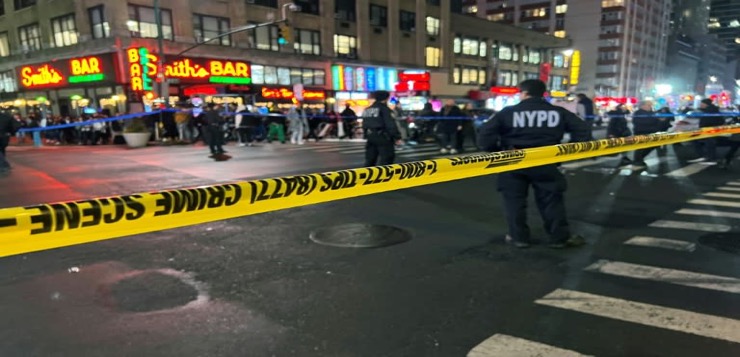 El tiroteo, afuera de un restaurante de comida rápida cerca de los grandes carteles publicitarios electrónicos iluminados y las multitudes de turistas de Times Square, provocó pánico en los peatones, informaron los medios locales.
