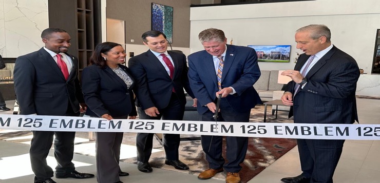 Providence – El gobernador Dan McKee estuvo acompañado el miércoles por la vicegobernadora Sabina Matos y los miembros de la Comisión I-195 para cortar la cinta del Emblem 125, un nuevo desarrollo de uso mixto en el Distrito de Innovación y Diseño en Providence. El proyecto alberga 248 unidades que incluyen unidades específicas para viviendas para la fuerza laboral y más de 22,000 pies cuadrados de espacio comercial en la planta baja.