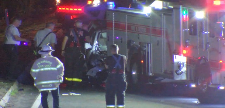 Foxboro, Mass. – Un automóvil quedó con fuertes daños, después de un accidente que involucró a un camión de bomberos de Foxboro el domingo por la noche en la I-495.