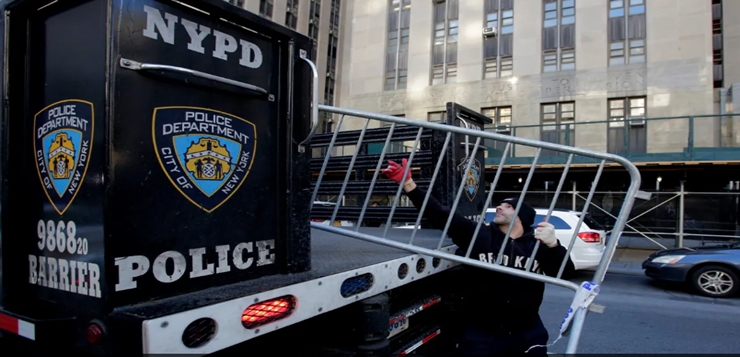 Decenas de elementos del NYPD resguardan el perímetro para alejar a las multitudes de las oficinas centrales de la corte, luego de revelarse que esa agencia policiaca se coordinaba con otras autoridades a nivel federal y estatal para contener a manifestantes