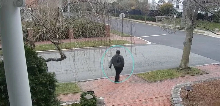 Algunos clips muestran a la persona caminando frente a varias propiedades en repetidas ocasiones. En uno de ellos, la persona gira bruscamente y corre en dirección contraria cuando alguien se acerca.