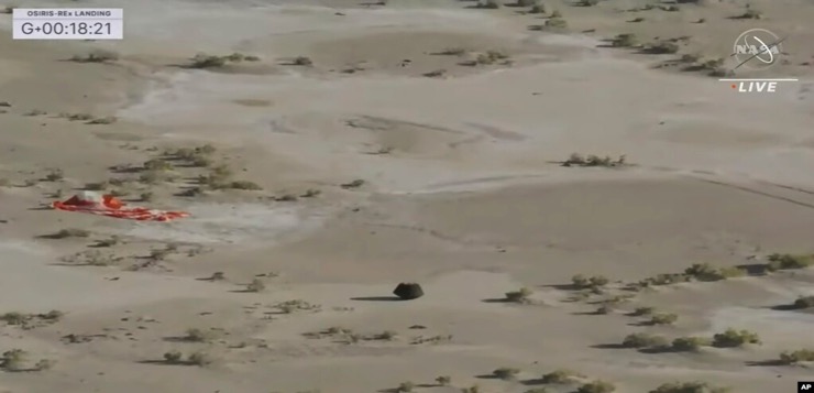La cápsula en forma de caramelo de goma, liberada de la nave robótica OSIRIS-REx mientras esta pasó horas antes a 107.800 kilómetros de la Tierra, aterrizó en una zona designada al oeste de Salt Lake City, en el vasto Campo de Pruebas y Entrenamiento del ejército estadounidense en Utah.