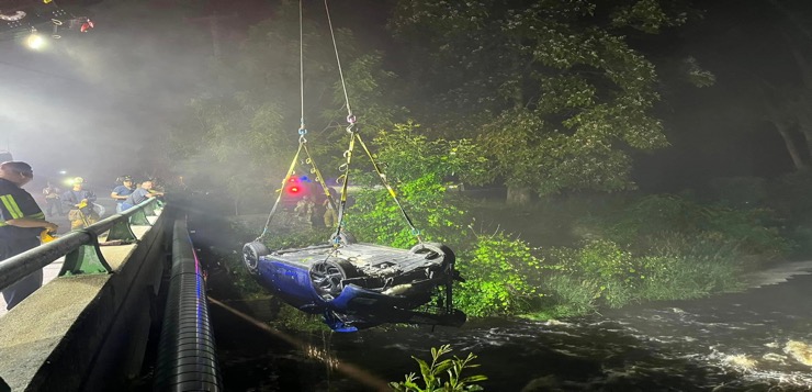 El departamento dijo que fue enviado alrededor de la 1 a.m. al área de un accidente automovilístico. Una vez allí, vieron un automóvil volcado en el agua con su conductor a un costado. El departamento dijo que los bomberos y los miembros de los departamentos de policía de Charlestown y Richmond ingresaron al agua, aseguraron al conductor mediante un rescate con cuerdas y lo entregaron para una evaluación médica. Luego se llamó a una compañía de remolque de servicio pesado para sacar el automóvil del agua.